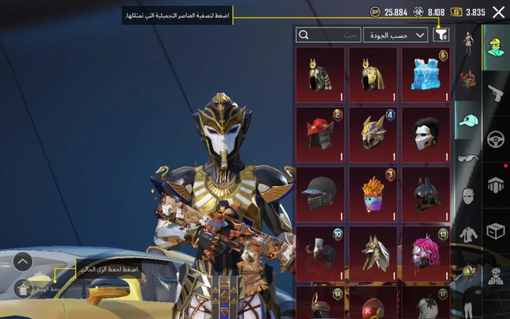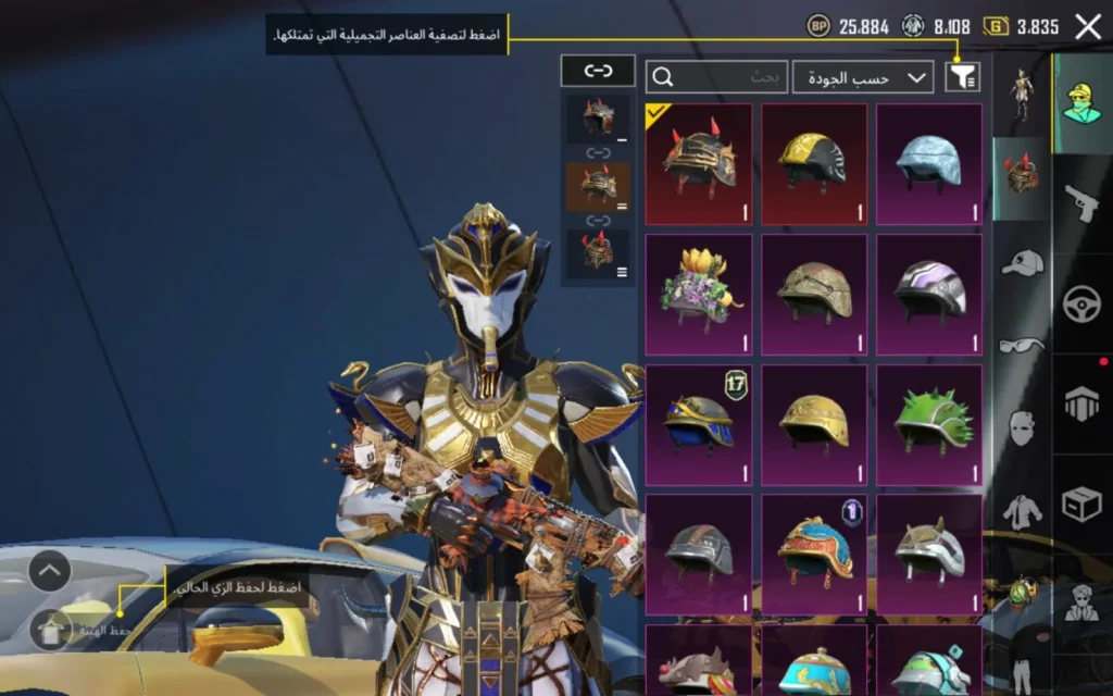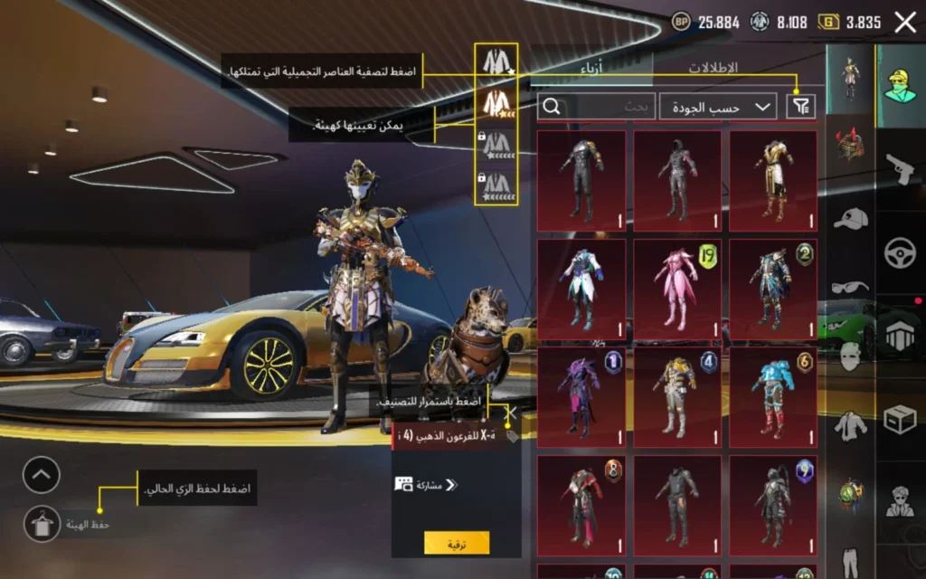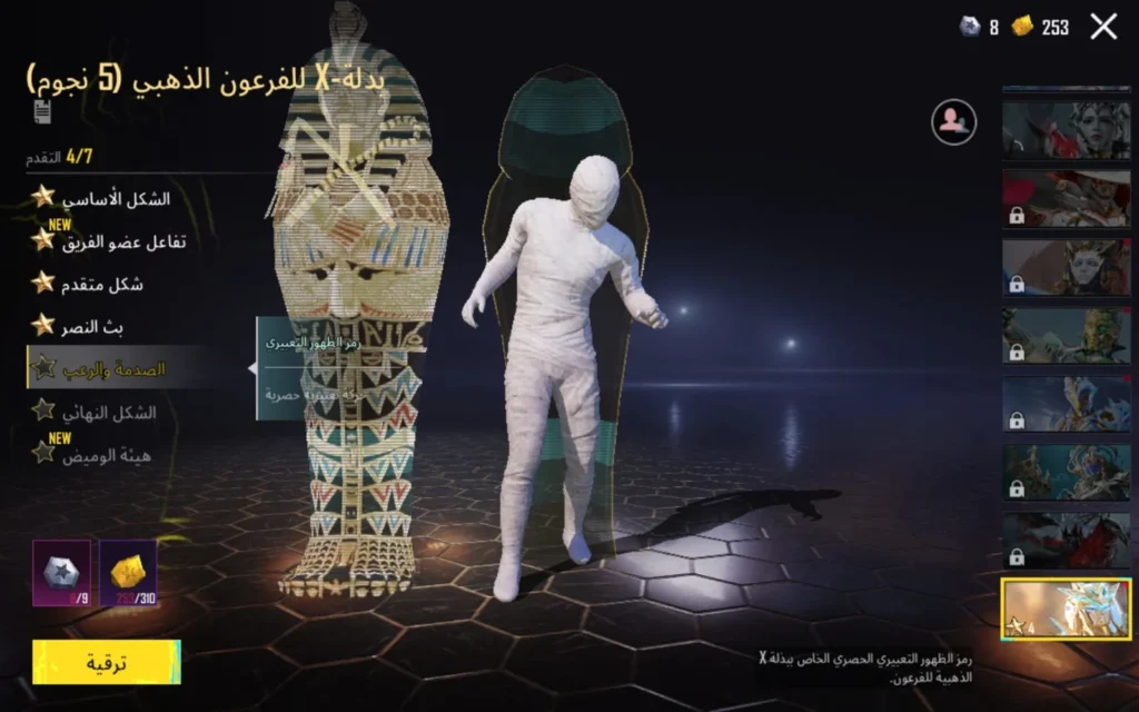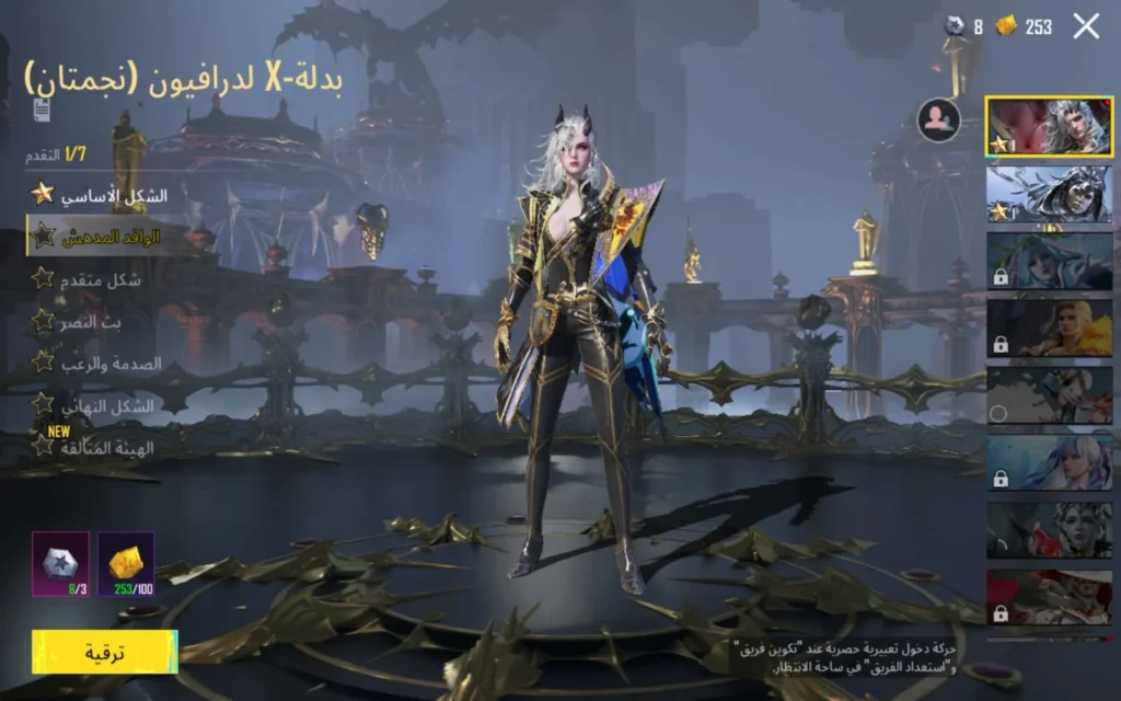 ✨️3 بدلات X( الفرعون ليفل 4 خمس نجوم , لانوبيس ليفل 1 نجمتين ، لدرايفون ليفل 1 نجمتين )
